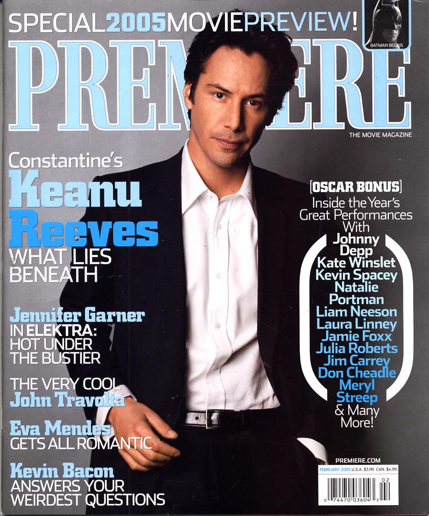 2005年 2月 CAST OF CHARACTERS Kathryn Bigelow, 監督, Point Break (1991) Sandra Bullock, 共演者, Speed (1994) Glenn Close, 共演者, Dangerous Liaisons (1988) Jan De Bont, 監督, Speed Francis Ford Coppola, 監督, Bram Stokers Dracula (1992) Tim Hunter, 監督, River's Edge (1986) Shia LaBeouf, 共演者, Constantine (2005) Francis Lawrence, 監督, Constantine Richard Linklater, 監督, A Scanner Darkly (2005) Nancy Meyers, 監督, Something's Gotta Give (2003) Carrie-Anne Moss, 共演者, The Matrix (1999), The Matrix Reloaded (2O03), and The Matrix Revolutions (2003) Jada Pinkett Smith, 共演者, The Matrix Reloaded and The Matrix Revolutions Joel Silver, プロデューサー, The Matrix, The Matrix Reloaded, and The Matrix Revolutions Ione Skye, 共演者, River's Edge Erwin Stoff, マネージャー Charlize Theron, 共演者, Devil's Advocate (1997) Gus Van Sant, 監督, My Own Private Idaho (1991) Alex Winter, 共演者, Bill & Ted's Excellent Adventure (1989) and Bill & Ted's Bogus Journey (1991) YOUR TIME WITH MR. REEVES IS NOW UP!" KEANU REEVES BELLOWS, IN HIS BEST GOD VOICE..2,3人の身なりのよいゲストがロスのシャトーマーモントホテルのロビーで カクテルを飲みながら話をしている。くすくす笑っていたり、周囲を見回しているように見えたのが止む。彼らは不意をつかれる。彼は正気なんだろうか? そして続く沈黙の中、かのキアヌ=リーブスを除いてはみんながうろたえている。 彼は深く頭をたれておじぎをして、そして笑う。まるで 片足を炎につっこんだ中年のおやじのように少々取り乱した感じだ。 機嫌がよいときはキアヌ=リーブスは馬鹿話の主役だ。とっぴな論議から 結論を導びいたり、即席のものまね(彼のアル=パチーノの物真似はすばらしい)をしたり、またときどき心臓が止まりそうになるくらい"Bluuuuhhh!" を爆発させる。Bram Stoker's Draculaの話題が出るといつも、 彼のジョークはとても単純に笑い飛ばすには程遠く、「ハハハ。。。(シーン)」という感じになり、笑おうにも困惑してしまうのだ。 キアヌ=リーブスは40歳になり、エニグマと呼ばれるようになってから ずいぶんと久しくなる。ほぼ20年の間、観客と同様に批評家を困惑させたり熱狂的に迎えられたりしつつ、キャリアを築いてきた。彼は自分の知性と160億ドルという天文学的ともいえるマトリックスの成功とそしてゲイ疑惑、また 一番致命的なのは彼の才能(なんとGoogleで、"Keanu Reeves"と"bad actor" のキーワードで検索すると7000を超えるサイトがヒットするのだ)についての 推論を尻目に同世代の役者よりも長く、そのキャリアを築いているのだ。 Bill and Ted's Excellent Adventure(「ビルとテッドの大冒険」)公開後の 16年間彼はいまだに天然ボケの足りないやつだと思われている。皮肉にもこれはキアヌにとっては痛手ではない。彼は「ぼくはあの役にぴったりなんだ」と笑って言ってのける。またそれと同様に、彼は年をとるごとにリトルブッダでシッタールタ、マトリックスのネオ役でもみられるように、 人間の本質を探求することに深く関心を持っている。次回作のA Scanner Darkly(小説の邦題:「暗闇のスキャナー」)では麻薬中毒の麻薬捜査官の 分裂した精神を演じる予定だ。また今月公開されるConstantineではタイトル と同じ名前の主人公で肺に腫瘍ができるほどのヘヴィースモーカーのダークヒーローを演じる。これらは彼が今まで生きてきて、多くのものを失ってはじめて 理解でいる境地にいたったキャラクターである。 「彼が人生に求めているものはほんの少しなんだ」と Reevesは紫の煙をくゆらしながら語る。 「彼がそんな境地に至っているんだ。疲れきっていて皮肉なんだけど 希望を持っている。わかるかい?彼は地獄と天国のすべてを見てきているんだ。